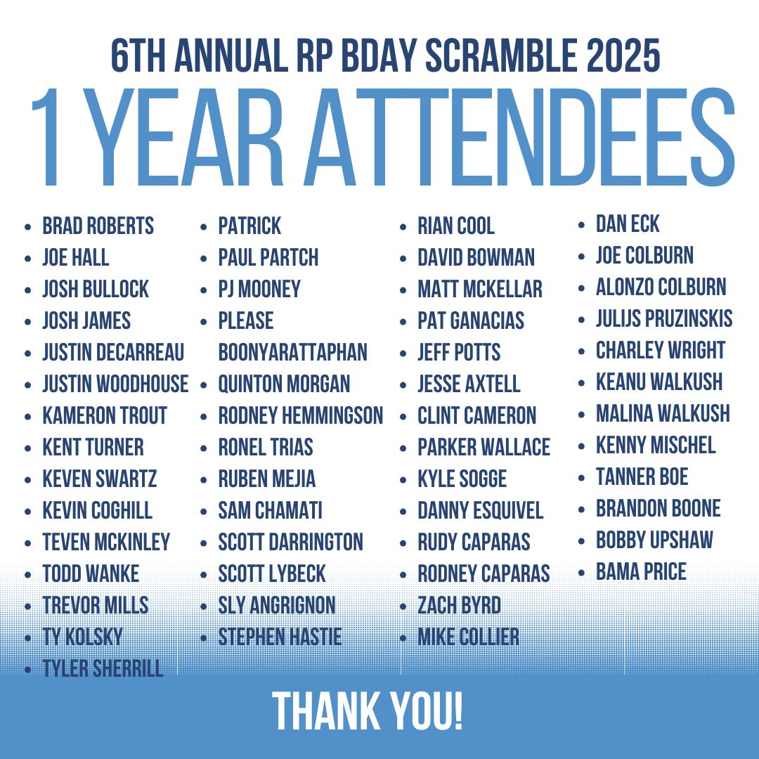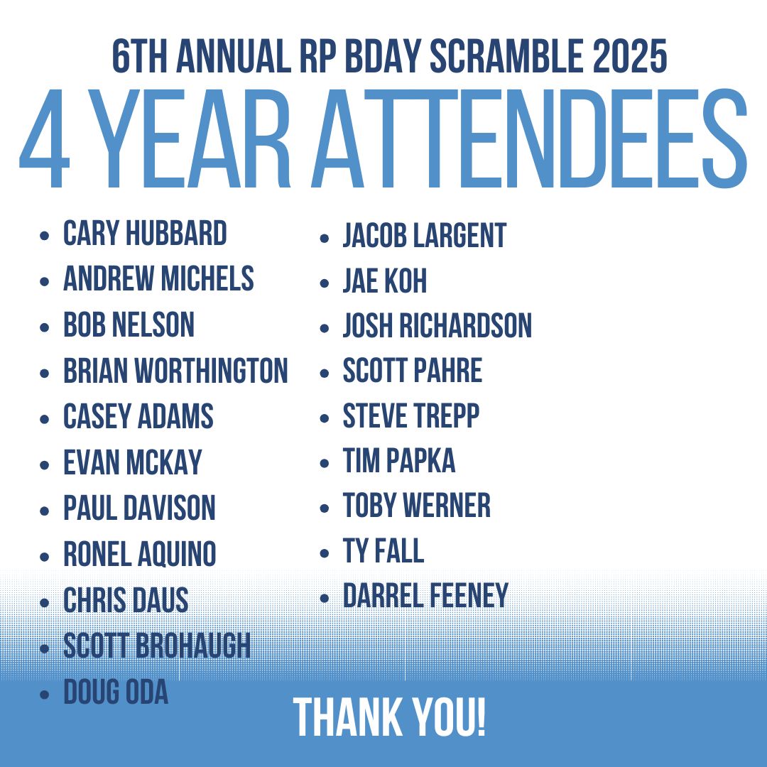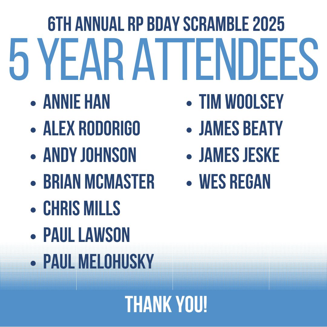 For the past 6 years, we have been able to have fun and enjoy each other's company rain or shine while celebrating Ryan's birthday. 2026 will be no different. We are all set for December 5th - 11:00 AM shotgun start.